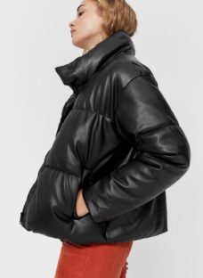 Geacă dama puffa din imitație de piele Stradivarius