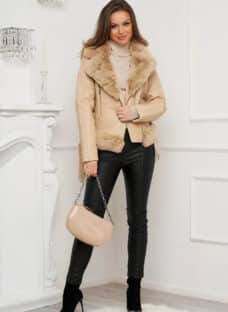 Geaca dama SunShine crem eleganta cambrata din piele si blana ecologica