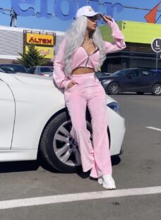 Trening dama catifea LIGHT PINK OVERSIZED UNIQUE cu pantaloni evazati