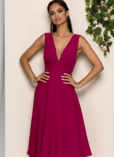 Rochie Moze Magenta cu decolteu in v petrecut si maneci scurte