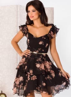 Rochie scurta cu croi in a material subtire cu maneci scurte si imprimeu floral S-053538-4