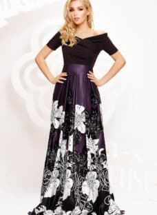 Rochie Artista lunga in clos pe umeri din satin cu maneci scurte S-053642-2