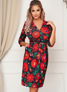 Rochie StarShinerS visinie midi de zi in clos din material usor elastic