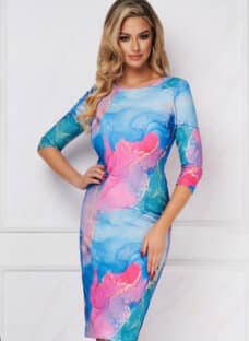 Rochie StarShinerS office midi tip creion crep cu imprimeuri marbel